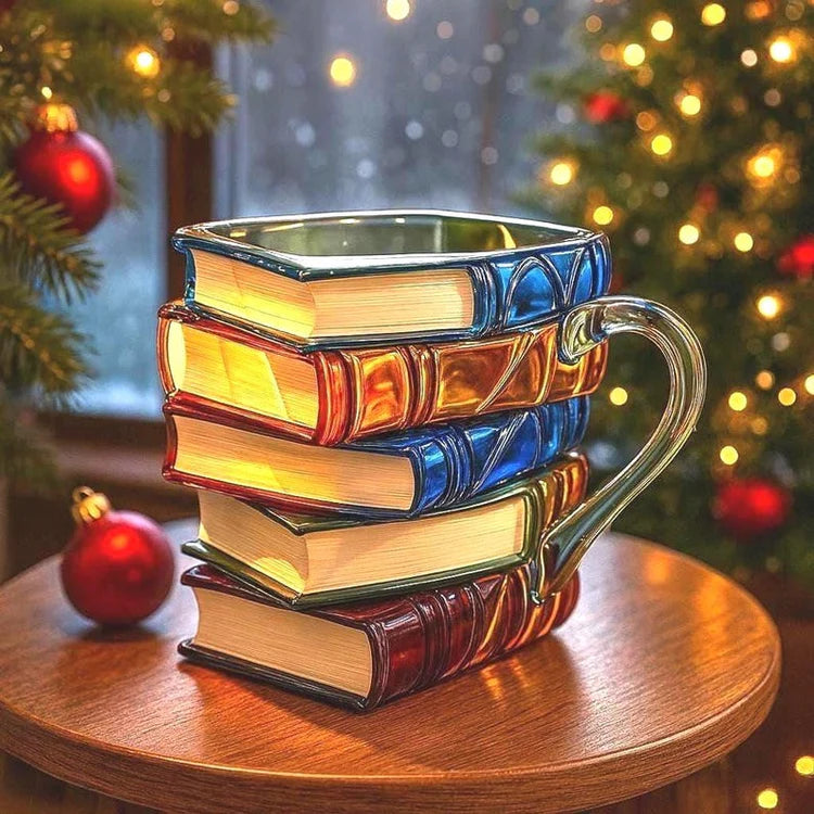A charming 3D book-stack mug that turns every sip into a cozy reading escape.